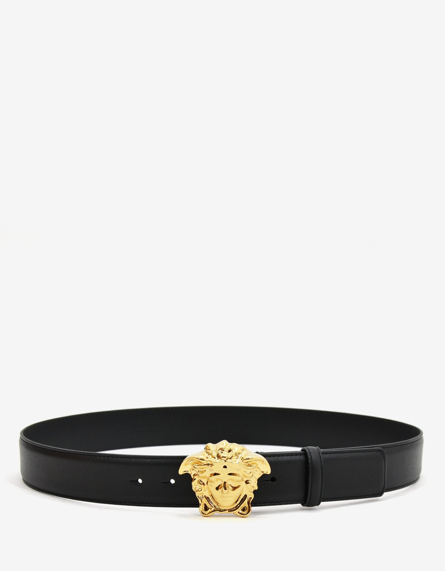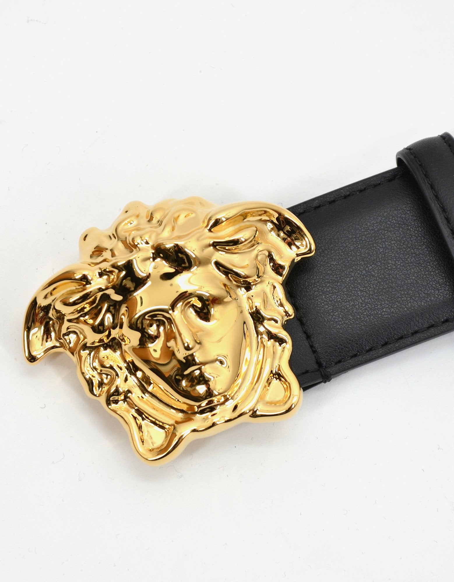 This black leather belt from Versace features an iconic gold-tone Medusa Head buckle.