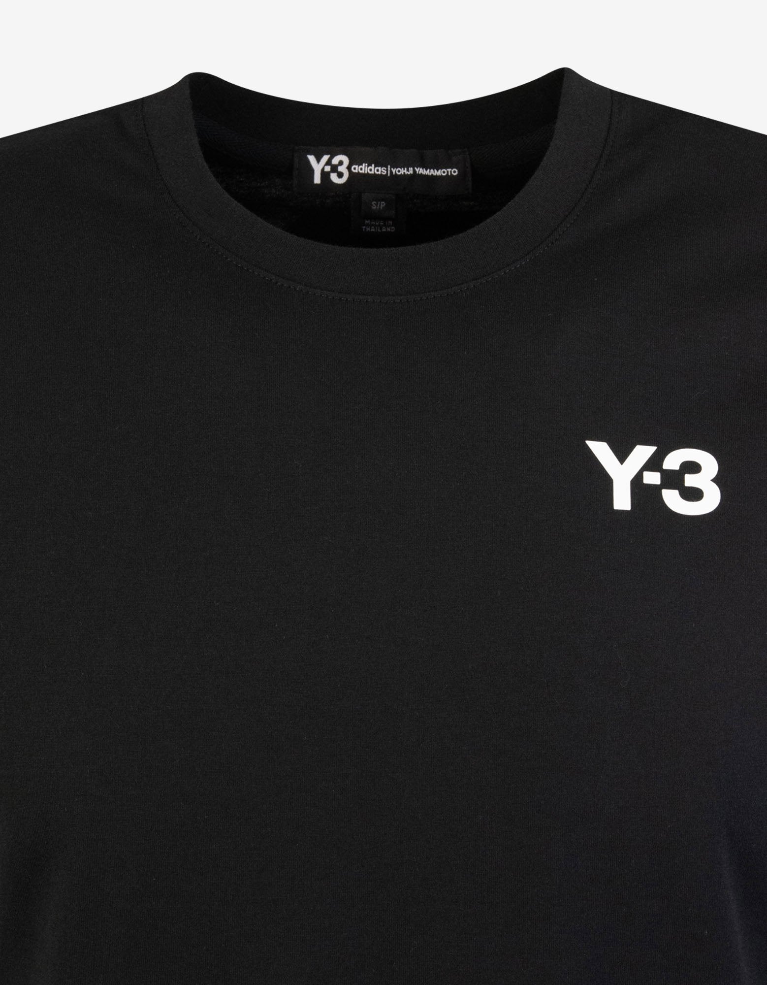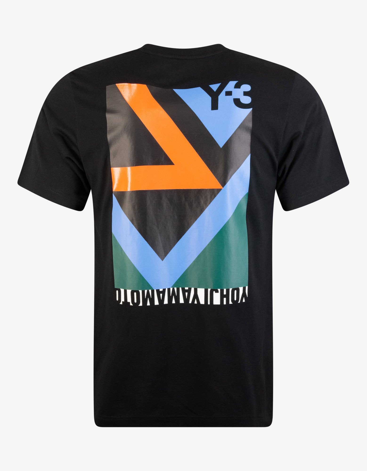 Multi-graphic print at the back with upside down 'Yohji Yamamoto' logo at the bottom