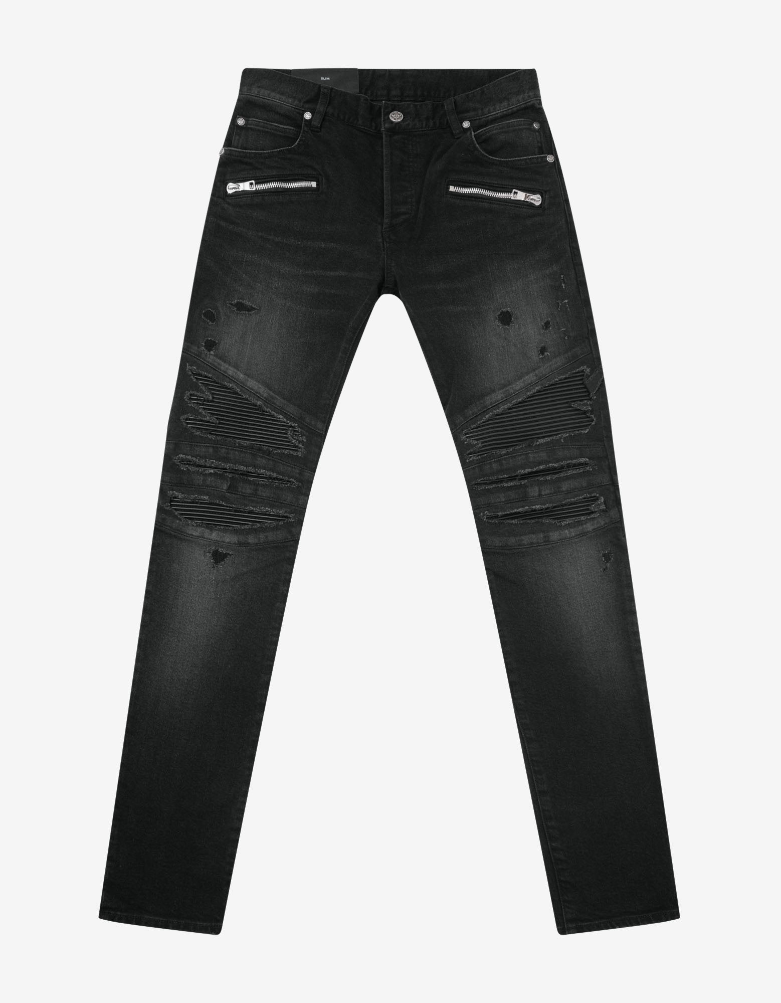 - Destroyed denim detailing throughout the garment