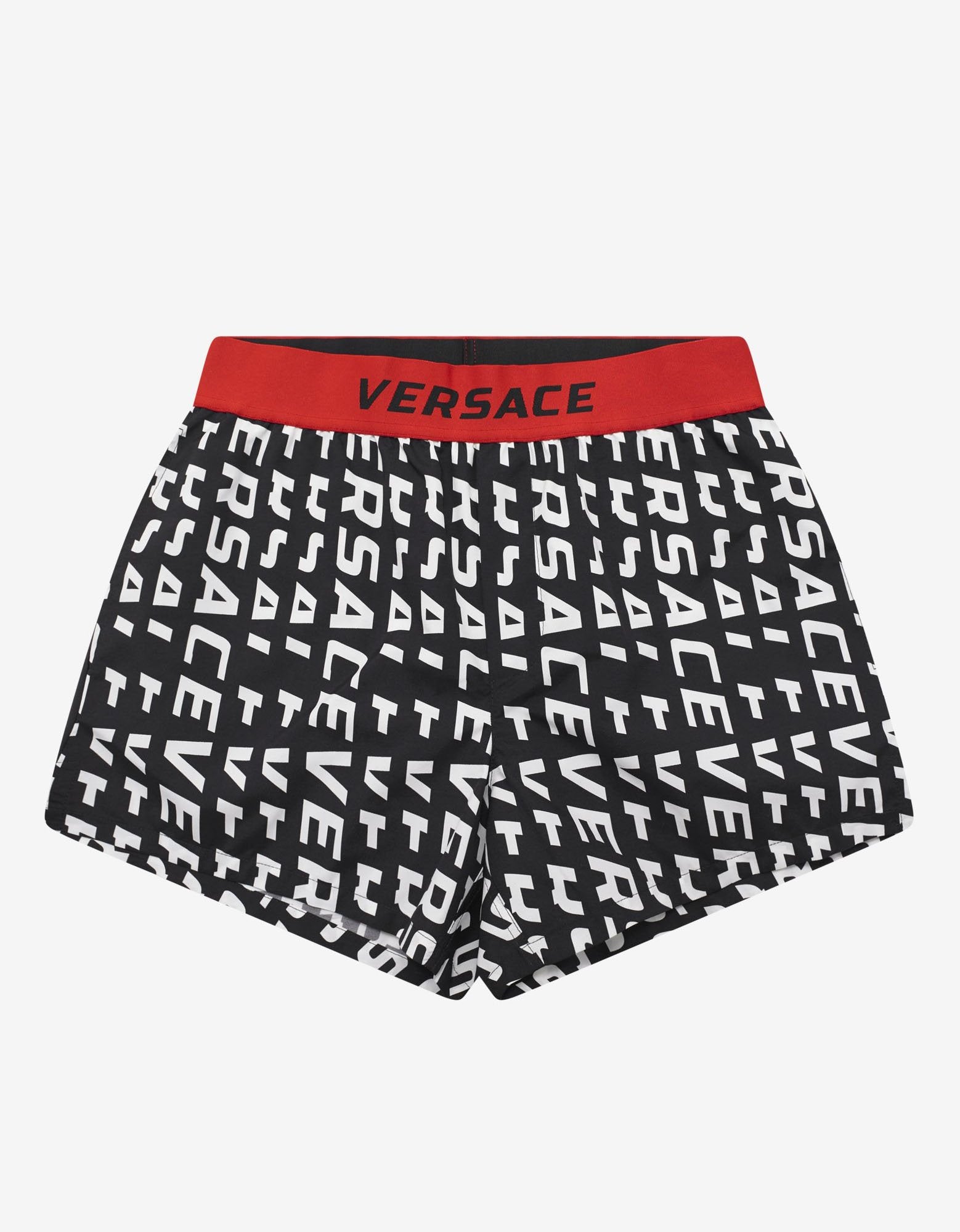 Red elasticated waistband with 'Versace' Speed logo intarsia