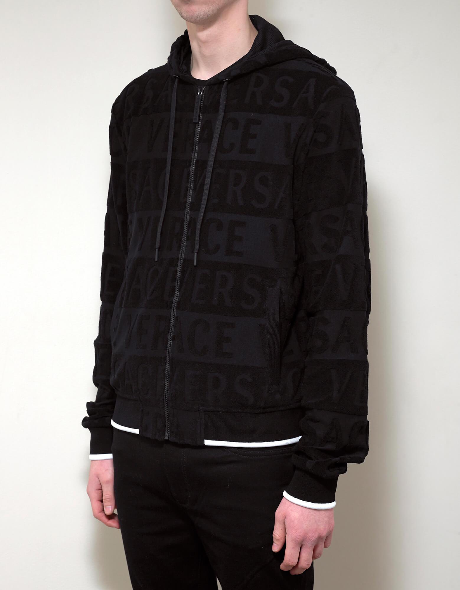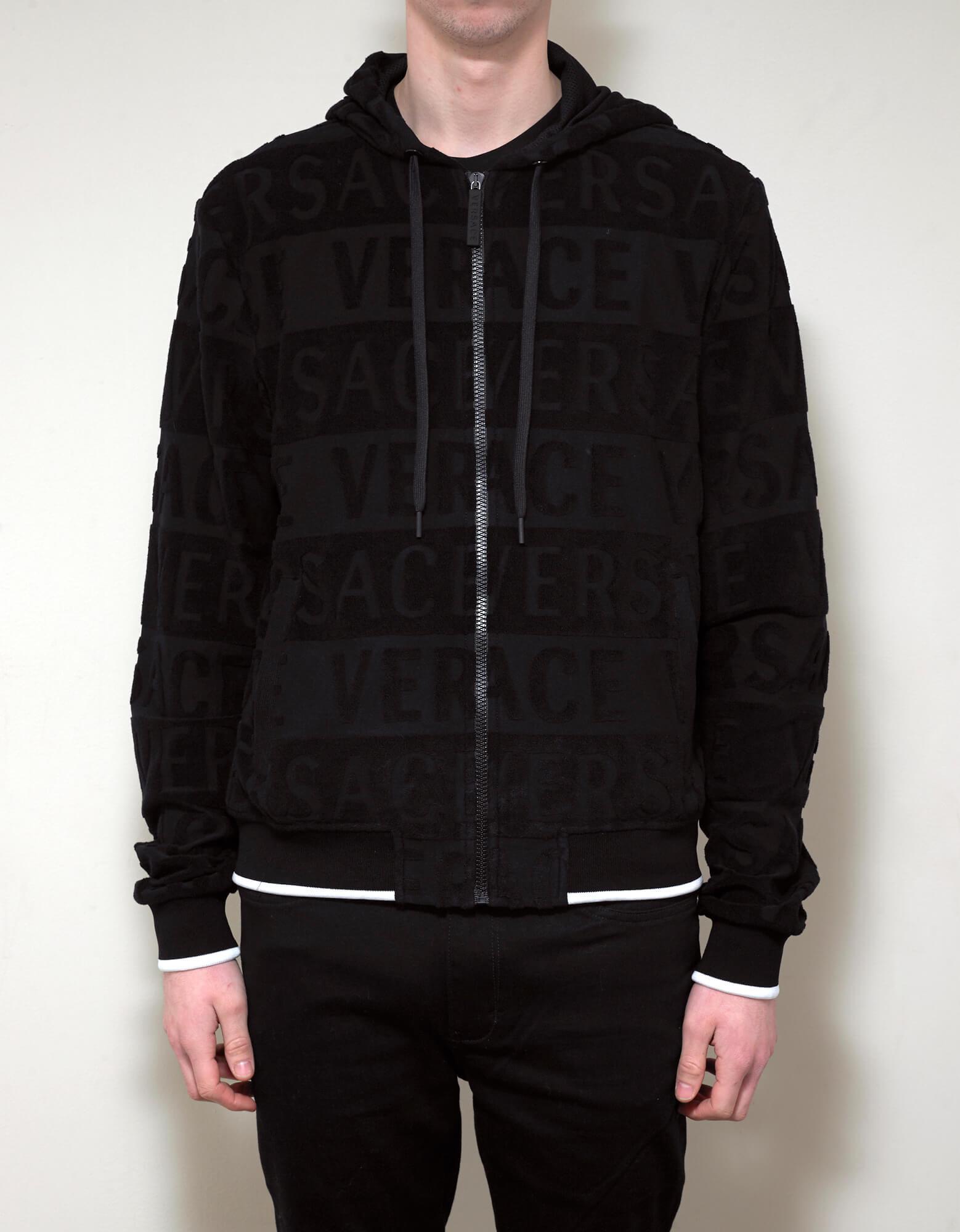 - All-over 'Versace' logo detail in tonal towelling fabric